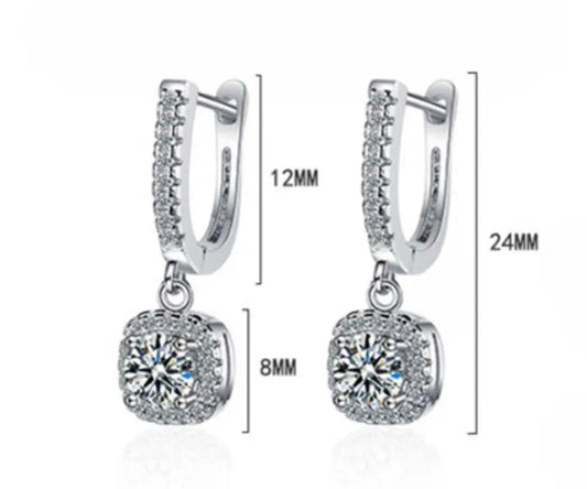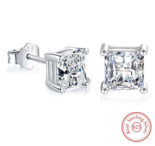 Genuine 925 Sterling Silver High-quality Fashion Jewelry Square Crystal Stud Earrings
