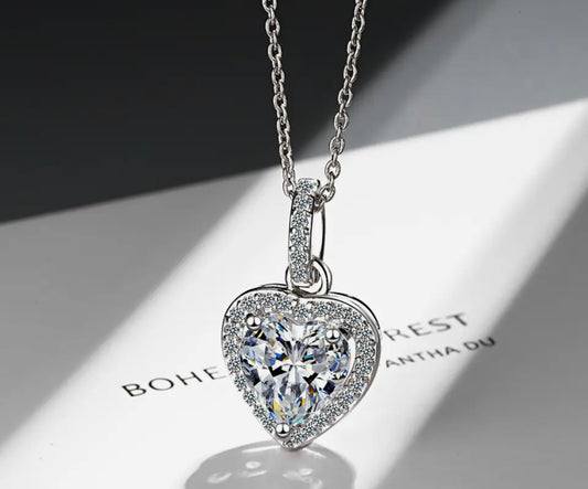 925 Sterling Silver Zircon Heart Pendant Necklaces For Women