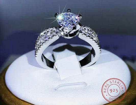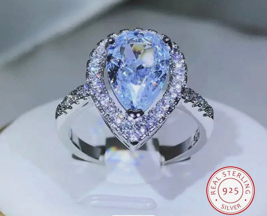 925 sterling silver elegant and exquisite drop-shaped white zircon ring