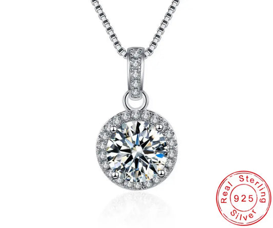 925 Sterling Silver Jewelry Zircon Fine Round Pendant Necklace