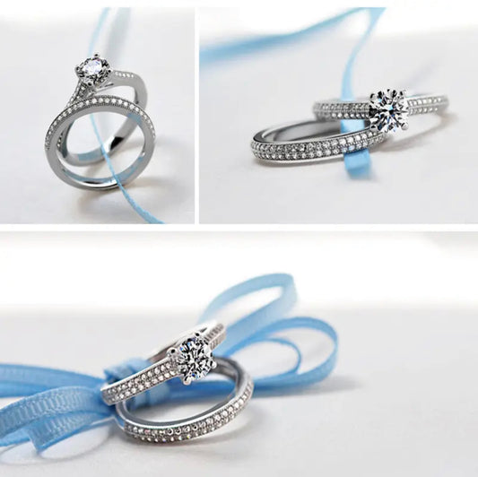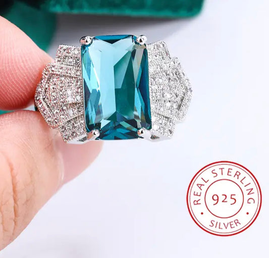 Stylish S925 Silver Ring for Women Luxury Blue Shiny Zircon Ring